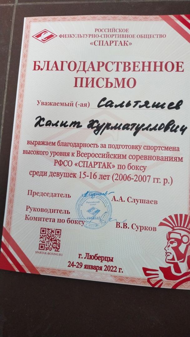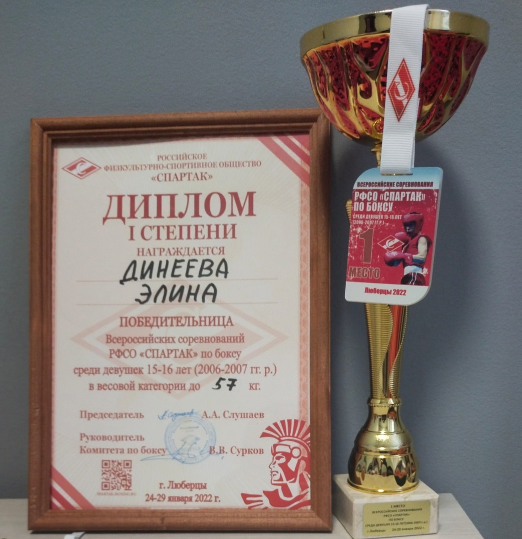 Поздравляем Динееву Элину с победой на Всероссийских соревнованиях РФСО "Спартак" по боксу! Путёвка на Первенство России завоёвана!