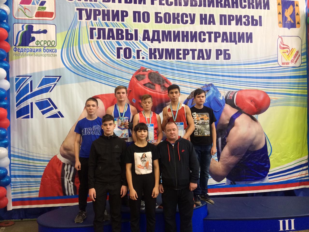 С 21 по 23 ноября 2019 года в г.Кумертау прошли зональные республиканские соревнования по боксу на призы Главы Администрации ГО г.Кумертау. Наш район представляли: Алсынбаев Дамир, Анищенко Владимир, Байдавлетов Айнур, Байдавлетов Айтуган, Булатов Айдар, Гусев Тимофей, Динеева Элина, Идельбаев Салават, Исмагилов Фидан, Суняйкин Илья. По результатам боев чемпионами стали Алсынбаев Дамир и Динеева Элина, 2 место заняли Байдавлетов Айнур, Булатов Айдар и Суняйкин Илья, 3 место — Гусев Тимофей, Идельбаев Салават, Исмагилов Фидан (тренер-преподаватель Сальтяшев Халит Хурматуллович). Поздравляем юных боксеров и их тренера с заслуженной победой, желаем дальнейших успехов!