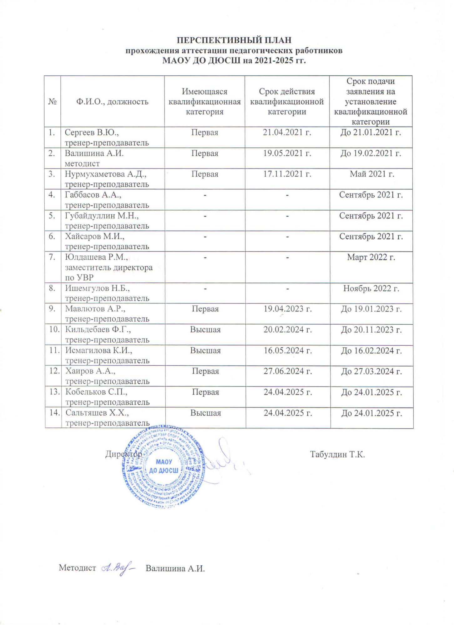 Перспективный план прохождения аттестации на 2021-2025 гг.
