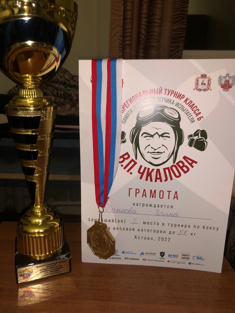 Еще одна медаль в копилке Динеевой Элины! В Межрегиональном турнире класса Б по боксу памяти Героя СССР В.П.Чкалова, прошедшем c 19 по 22 октября 2022 года в г.Кстово Нижегородской области, она стала чемпионкой в своей весовой категории! Поздравляем Элину и её тренера Сальтяшева Х.Х. с очередной победой!